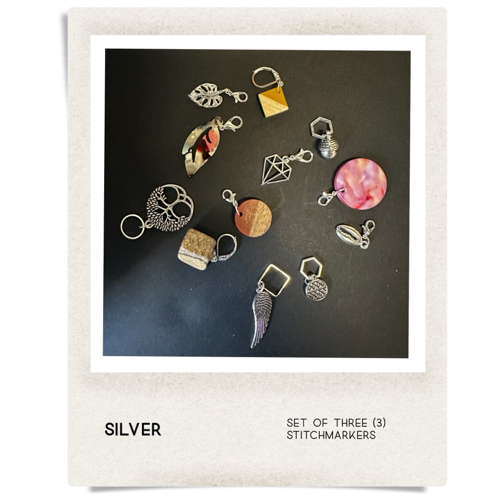 All sets contain three (3) or more stitch markers with either a lobster or lever back clasp attached. Progress keepers are finished with a 10/12mm closed hoop or shape.